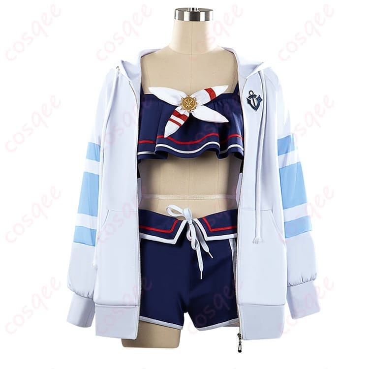 シュヴァルグランの「夏凪ネイビードロップ」をイメージした水着モチーフの勝負服コスプレ衣装です。落ち着いたネイビーの配色で大人っぽさを演出しつつ、夏らしい軽やかな雰囲気で撮影会やイベントに映えます。